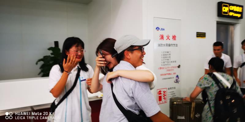 闭营式结束后,全体营员一同乘大巴前往昌北机场,为台湾学生送行。八天的吃住同行,让大陆和台湾的学生们结下了深厚的友谊,台湾的学生依依不舍地走进机场大厅,大陆的同学默默地帮忙推着行李迟迟不愿意离开,他们在机场相拥泪别、拍照留念。这一幕幕,不禁引起路过的行人驻足围观,他们之间的这种情谊也深深感动着身边的人。