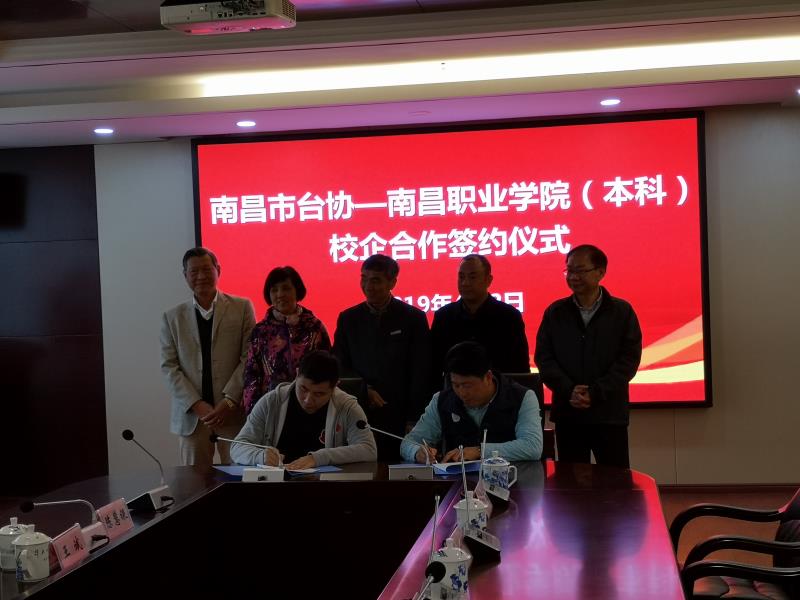 2019年4月2日,为了进一步解决台企用工难、青年学生就业难问题,南昌市台办组织14家台企到南昌职业学院进行了参观考察和校企合作洽谈,举行了校企合作签约仪式。市台办副主任蔡安枪,市台联会长、南昌职业学院理事长章跃进、院长周金堂,市台协常务副会长、南昌市新堡电子防护技术有限公司总经理陈志仁等出席签约仪式。
