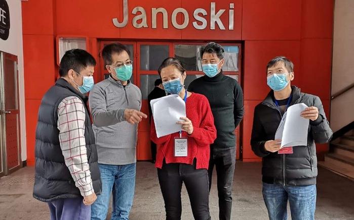 潘凌首先来到员工体温测量处,查看了消毒棚、消毒池的搭建情况;随后前往食堂、餐厅、宿舍、隔离留观室、医务室等,现场查看相关测温、消毒设施的准备情况;并向企业负责人详细询问了企业疫情防控机构、应急预案的制定、防控物资的配备,以及厂区消杀、人员管控、责任承诺、分散就餐、住宿安排、宣传发动等各项保障措施的准备情况。