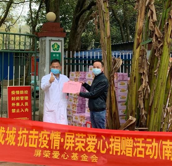 屏荣食品在积极响应政府号召、全力做好自身疫情防控工作的同时,始终关注牵挂着疫情防控工作。在听说南昌康定医院400余名病患急需帮助之后,便及时向他们送去慰问物资,向患者伸出援手。据悉,屏荣食品公司长期参与公益事业。新冠肺炎疫情发生以来,公司通过全国各地工厂向当地捐赠爱心物资助力防控疫情。屏荣食品公司董事长吴宏哲认为,企业在主动承担一些力所能及的社会责任,从事社会公益慈善时,能给员工们使命感,让他们感同身受,让公益慈善事业成为企业的文化基因。