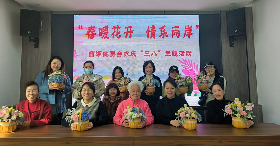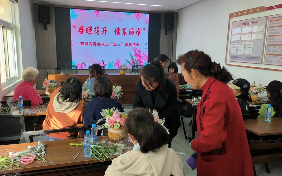 西湖区开展“春暖花开 情系两岸”庆“三八”活动 2023-03-08 在“三八”国际劳动妇女节来临之际,3月5日下午西湖区委台办组织区内10余名女台胞台属代表开展“春暖花开 情系两岸”庆“三八”主题活动,用鲜花感受节日氛围,涵养女台胞台属的高雅情怀。 插花活动中,花艺师从鲜花的学名、挑选花束的诀窍、插花的技巧和色彩搭配等为大家一一讲解,女台胞台属们认真听讲,仔细揣摩工艺要点,大家一边插花一边探讨,享受插花的乐趣。参加活动的女台胞台属们纷纷点赞活动很精彩、很有意义。台属崔女士说:“艺术插花活动不仅可以提高生活情趣,愉悦身心,舒缓压力,还增进了台胞台属之间的感情,希望以后台办以后多开展类似活动。” 西湖区委台办负责人表示,希望女台胞台属们能够通过活动增进交流,深化友谊,充分发挥女性“半边天”的作用,在全面建设社会主义现代化南昌征程中,激扬巾帼之志,奉献巾帼之力,彰显巾帼之美,为促进昌台融合发展,推进祖国统一进程贡献智慧和力量。(供稿:李佩,审校:杨翔,签发:尤丁发)