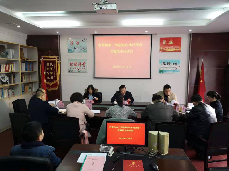 根据市委统一部署,12月9日下午,市委台办领导班子召开“不忘初心、牢记使命”主题教育专题民主生活会,会议由巫滨主任主持,市委主题教育第九指导组副组长杨航到会指导,市纪委监委派驻市政协纪检监察组长陈军虎参加。