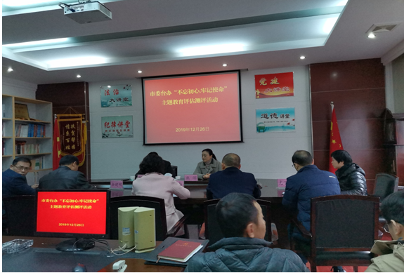 12月26日上午,市委主题教育第九指导组对我办进行教育成效情况测评,全办全体党员干部参加了测评会。